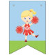 Festa de cheerleader Esta design divertida e alegre mostra um lindo esquadrão de líderes de torcida de amigos bonitos. Dois, Quatro, Seis, Oito, esta equipe está pronta para celebrar. Design perfeito para a festa de aniversário de torcida do seu filho.
