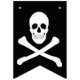 Esta design apresenta uma bandeira tradicional voada por piratas no século XVIII; a bandeira é chamada de Jolly Roger. Apresenta um crânio e ossos cruzados num fundo preto. A bandeira foi originalmente concebida para intimidar inimigos, mas pode agora ser usada para tornar mais excitantes os partidos e outros eventos! É um design histórico que ainda é instantaneamente reconhecível.