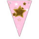 Estrelas cor-de-rosa e Douradas Chá de fraldas Boas-vindas Banner de montagem de chás de fraldas de Pegadas Mundiais.