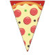 Esta faixa festiva de bunting apresenta um design que se parece com fatias de pizza de pepperoni com azeitonas pretas e pimentos verdes e está pronto para a próxima festa de pizza.