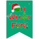 Pickleball party red and green holiday decoration - oh what fun bunting with a Christmas tree made out of green pickleballs to hang on a pickleball court, courtside canopy tent or at any party for a pickleball holiday party, secret Santa, potluck, round robin, or Christmas pickleball tournament.