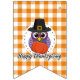 Bandeirinha Pilgrim Owl em Orange Xadrez - Feliz Ação de Graça