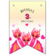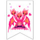 Cute little pink dragon with three heads and pink hearts around for kids birthday party