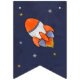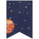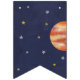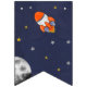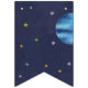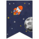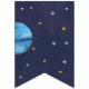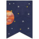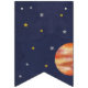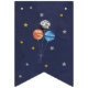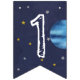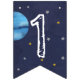 Banner de bunting de festas de espaço moderno do primeiro aniversario. O espaço inspirou a primeira viagem ao redor do sol com planetas, foguetes e estrelas com aquarelas.