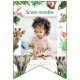 Brigue o seu aniversário de safari com este belo monte de fotos! Patternado com folhas verdes a aquarelas, e animais da selva fofos. Cada modelo de sinalizador está pronto para usar para adicionar suas fotos que você tem espaço para catorze fotos diferentes. Vamos comemora o primeiro aniversario do bebê! Excelente para um selvagem temia a primeira festa de aniversário para um garoto ou uma garota. Localizar itens totalmente personalizáveis correspondentes no meu compro.