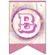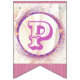 Decorre o aniversário do tema da princesa do conto de fadas com esta adorável faixa de pennant, com bandeiras cor rosa e púrpura pastel, com um zircão rosa nos cantos. Aproveite a celebração do conto de fadas da princesa. Estas bandeiras são da Coleção Uma Vez na Festa de aniversário da Princesa do Tempo.