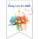 O Psychedelic Boho Retro Party Amanita Mushroom Bunting Flags apresenta um cogumelo colorido, como Fly Muscaria, como um cartoon abstrato, com seus pontos brancos em vermelho vivo. Este cogumelo legal é rodeado por uma espinha psíquica colorida em tons de roxo, verde, laranja, amarelo e rosa. O cogumelo divertido e o sabiá colorido estão em todas as bandeiras, alternando fundo azul brilhante com texto verde claro e claro que diz, "Rush Psicodélico" (e, não, isso não é um erro tipográfico) e fundo branco com texto azul brilhante que diz, "Partido Como É 1969!" Mas você pode mudar as cores de fundo, a arte, e o texto para qualquer coisa que você preferir com as ferramentas fáceis de design do Zazzle. Veja os suprimentos e presentes mais legal em nossa loja em zazzle.com/VicesAndVerses. Festa ligada.