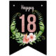 Chic Modern Happy 18th Birthday Bunting Flags com Rosa Dourado Glitter "18" em um fundo preto elegante embelezado por uma coroa floral.