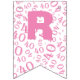 Decore para seu aniversário de 40 anos com as bandeiras com seu texto sobre um teste padrão cor-de-rosa e branco do número. O teste padrão do número é arte digital criada com o número 40 dispersado em tamanhos e em ângulos diferentes para all over um impressão. Cada bandeira tem a sala para um letra ou número; há um modelo do texto para que cada bandeira faça-o fácil para que você personalize. Você pode pôr uma letra ou um número sobre cada bandeira, ou substitua as letras um asterisco ou remova-as.