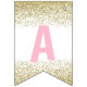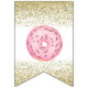 Rosquinha Dourada Sprinkles Parabéns Banner de aniversário com ilustração aquarela de uma rosquinha cor-de-rosa com bordaduras douradas. Parte de uma coleção. Itens correspondentes disponíveis.