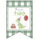 Bandeirinha Segundo aniversário de Dinossauro de Aquarela