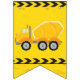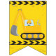 Legal e personalizada escavadora Happy Birthday bunting banner para uma criança que ama veículos de construção amarelos em preto e amarelo. Design de veículo divertido para um menino que ama carros e caminhões. Personalize com a idade do seu filho sob a fita de precaução em preto e amarelo.