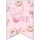 Complete your party decor with this adorable "Happy Birthday" banner! Designed to coordinate with the "Sweet One" collection, this bunting features whimsical pink letters accented with watercolor donuts, cupcakes, and sweet treats.