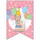 Faça o seu aniversário especial de Tawny Neapolitan Mastiff com o nosso adorável design com tema de cão, com um chapéu de festa e balões coloridos.