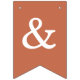 Uma simples bandeira de bunting para um casamento de terracotta, com os nomes da noiva e do noivo, com bonés brancos em fundo marrom terra cotta.