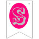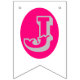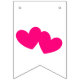 Bandeirinha Texto prateado e iniciais, corações magenta em bra