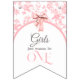 Bandeirinha Toile de Jouy Girl Pink Bow First 1st Birthday