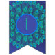BANDEIRINHA TRENDY FELIZ ANIVERSÁRIO PEACOCK PENA AZUL VERDE