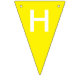Esta bandeira feita sob encomenda colorida caracteriza dezesseis bandeiras multi-coloridas do triângulo em vermelho, em amarelo, em azul, em verde e a laranja. Cada bandeira do triângulo pode facilmente ser personalizada com seu próprio texto ou criar uma bandeira vazia sem o texto simplesmente suprimindo o texto da caixa.