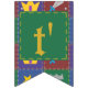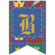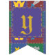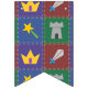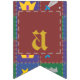 Põe a imaginação da tua pequenina com esta design de fantasia. Quatro quadrados em ricos azuis, verdes, roxos e vermelhos são emoldurados por marcas douradas e pontas prateadas e decorados com ícones estilizados e divertidos que estariam em casa em qualquer cenário de fantasia, incluindo uma varinha mágica pontiaguda por estrela, torre de castelo, coroa enfeitiçada com joias e uma espada de casco azul. Personalize a mensagem na faixa com seu pequeno gênero em breve ou uma mensagem de sua escolha para criar uma decoração de festas verdadeiramente exclusiva para seu chá de fraldas. Isso pode ser facilmente alterado entre "garoto", "garota" e "bebê", e se você estiver tendo gêmeos ou outros múltiplos, basta clicar no botão "Personalizar" para obter mais opções. Não se esqueça de verificar o cheio A Wee One's Fantasy Quilt para mais presentes e produtos de excelente para um chá de fraldas ou para o pequeno da sua vida.