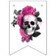 Bandeirolas góticas vintage caprichosas com rosas cor-de-rosa intenso adornando esqueletos e caveiras.