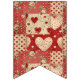 Bandeiras bunty Vintage Shabby Chic. Lindos padrões de patchwork vermelhos. Desenho lindo e moderno. Perfeito para festas, casamentos, aniversários, eventos de trabalho e empresas. Tema romântico feminino com rosas vermelhas, corações e bolinhas.