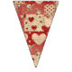Bandeiras bunt Vintage Shabby Chic. Lindos padrões de patchwork vermelhos. Desenho lindo e na moda. Perfeito para festas, casamentos, aniversários, eventos de trabalho e empresas. Tema romântico feminino com rosas vermelhas, corações e bolinhas.