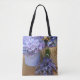 Hydrangea e flor de lavanda impressas em uma bolsa para levar onde quer que você vá.