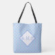 Saco de na moda com um padrão em blues, o fundo branco pode ser personalizado a qualquer cor, e as iniciais em monograma podem ser personalizadas para você mesmo ou para um presente.