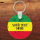 O sinalizador rastafári personalizado chaveiro de texto personalizado. Cor verde amarela e vermelha. Sinalizador striped horizontal. Adicione seu próprio nome ou citação. Modelo de tipografia de safra.