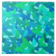 Azulejo cerâmico num bando de borboletas em gradientes macios de turquesa, aqua, verde-marinho e azul-céu, sobre fundo aqua pastel