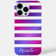 Crie uma capa de telefone personalizada única com um fundo rosa, roxo e azul ombre e um padrão listrado branco. O modelo de texto facilita o tipo do seu nome.