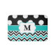Mostre fora seu estilo em uma maneira do divertimento com estas bolinhas do preto e da cerceta e tapete de banho do monograma da viga.