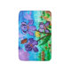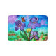 Minha pintura original da cor de água imprimiu em um tapete de banho que caracteriza as flores roxas da íris e uma borboleta de monarca no nascer do sol.