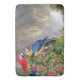 A colagem bonita de pássaros e de orquídea do papagaio do Macaw das belas artes do vintage floresce e as plantas tropicais com uma cachoeira da floresta tropical no fundo estão neste tapete de banho. As imagens são dominio público devido aos direitos reservados expirados. A colagem é por mim.