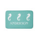 Três cavalos marinhos brancos saltam avante através da água do verde da cerceta do seafoam sobre seu nome de família personalizado ou do outro texto neste tapete de banho náutico da criatura marinha. Os botões cerâmicos assim que você dos fósforos podem realmente puxar junto sua decoração do banheiro. O texto é mudado facilmente com a ferramenta acessível do modelo na página do produto. Personalize suas cores, pias batismais, adicione imagens, e mais clicando no botão da personalização abaixo da imagem. Eu usei meus cores mais populares e símbolos náuticos para fazer já diversas combinações diferentes. Este tapete de banho tem uma cortina de chá de harmonização aqui: