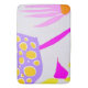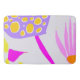 Partes de bolbos, pétalas e plantas são vistas florescendo em rosa, roxo, amarelo e laranja neste tapete de fundo lilático.