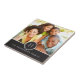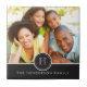 Este azulejo elegante e moderno apresenta uma imagem de uma família ou casal ao fundo, um círculo com um monograma à frente e um banner horizontal na parte inferior que inclui o nome da família. Este azulejo faz um presente excelente para celebrar a família, um casal que se engajou ou se casou, ou uma nova casa.