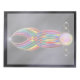 Um abstrato brilhante e fluente, emoldurado em ouro e estudado com diamantes e pérolas. Sinuos fluxos luminosos de curva vermelha, amarela, verde, azul, roxa e rosa suavemente, cruzando de uma pérola de excelente para a ponta, acentuados no final por um estouro. Esta design do arco-íris é colocada contra um fundo de seda negra.