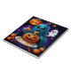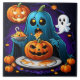 Um fantasma brincalhão desafia as entranhas de abóbora cercado por pintas entalhadas e decorações assustadoras, celebrando o espírito festivo do Halloween.