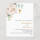 Para o batismo de 2 crianças, neutro em relação ao gênero. Um fundo branco decorado com verde e ouro de eucalipto e uma flor branca. Personalize e os nomes, fotos e detalhes da cerimônia infantis. Letras pretas e ouros coloridas. 1 folha = 1 convite impresso de borda a borda.