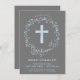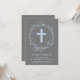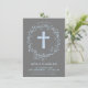 Este baptismo moderno ou o batismo 4,5" x 6,25" convida características uma grinalda floral azul do estilo elegante da aguarela assim como uma cruz azul. Ideal para a celebração religiosa de um bebé, pode ser personalizada com nome da sua criança e os detalhes do evento.