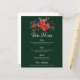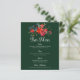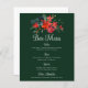 Este lindo menu de bar de feriado mostra uma bela aquarela de flores de poinsettia vermelha e folhas de pinho para um casamento de Natal. Lista de bebidas personalizadas elegantes com um design floral festivo de poinsettias em verde-caçador.