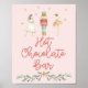 Festa natalícia de Nutcracker, placa de bar de chocolate quente com estrelas douradas e fundo rosa.