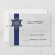Placa RSVP do Bar na moda Mitzvah com faixa azul escura embelezada com Star de David sobre a cinza clara e o fundo em apuros. Convite de coordenação disponível (ver abaixo).