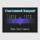 Uma imagem fractal roxa e azul, com um Magen David (Estrela de David), no meio, como uma menorah Chanukkah. As velas estão acesas. Tudo num fundo estrelado. Leitura em texto cirílico (russo), "С ч с л т и в о а й Х а н у к и as Adicione seu próprio texto adicional em cirílico ou mude para uma fonte em inglês.