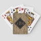 Criar seus próprios cartões de jogo monogrammed do olhar rústico, de madeira para ele fundo de madeira do olhar das pranchas de madeira rústicas do celeiro. Três iniciais monogrammed em combinar o marrom tan em um carvão são no centro. Mude a cor de texto, a pia batismal, o tamanho, etc. prontos para personalizar para um presente viril, personalizado para jogadores de póquer, jogadores de ponte, ou para qualquer um que ama jogos de cartas. Add personalizou o nome, data, todo o texto personalizado. O presente original do chá de casamento do celeiro do país, presentes do padrinho de casamento, personalizou favores rústicos do casamento, para o tema de Las Vegas parties ou casamento de Las Vegas ou casamentos rústicos do celeiro. Presente masculino, personalizado para homens.