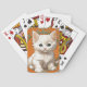 Tocando Cartões com um gatinho branco no estilo Art Nouveau de Alphonse Mucha! Um belo gatinho com olhos azuis piercing olha para o espectador. Círculos geométricos laranja com folhas verdes e lattice branca rodeiam o gatinho. Um presente perfeito para amantes de gatos e colecionadores de Art Nouveau!