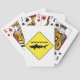 Cartões de jogo com um sinal de tráfego amarelo com "um ícone do tubarão de advertência".
