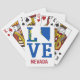 Amor de Nevada. Nevada em letras maiúsculas vermelhas com a palavra amada preenchida com a bandeira estadual. A letra O apaixonada é a silhueta com o contorno do estado de Nevada.